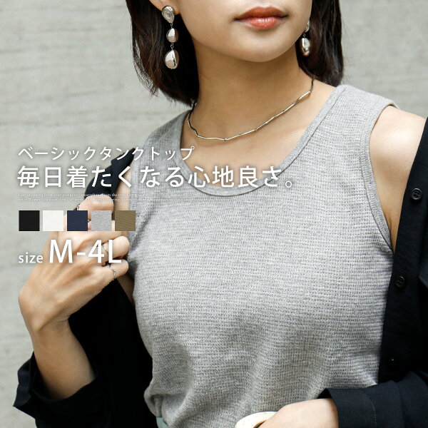 サイズ 着丈(バック) バスト 袖ぐり ネック幅 M 63cm 40cm 19.5cm 20cm L 65cm 43cm 20.5cm 20.5cm LL 65cm 46cm 21.5cm 21.5cm 3L 67cm 49cm 22.5cm 22.5cm 4L 67cm 53cm 24cm 24cm カラー ホワイト / 杢グレー / ネイビー / ブラック / カーキ 素材 ホワイト・ネイビー・ブラック・カーキ / 本体:綿100% 別布部分:綿95% ポリウレタン5% 杢グレー / 本体:綿90% レーヨン10% 別布部分:綿80% レーヨン15% ポリウレタン5% 備考 伸縮性:あり / 透け感:ホワイトのみややあり 生産国 バングラデシュ モデル身長 身長:153cm / 着用サイズ:M コメント 適度な凹凸感とコットン素材がさらっとした肌触りに! デイリーで使える薄目ワッフルタンクトップ。
